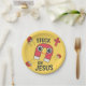 ¡Celebra la fe de una manera divertida y alegre con este plato fiesta brillante y alegre "Atrapado en Jesús"! Con un imán personalizado feliz rodeado de imanes diminutos, pernos relámpago y una cruz roja audaz, esta obra de arte lúdica se coloca sobre un fondo suave y de paz con un sutil mármol. Perfecto para los fiestas cristianos, celebraciones de salvación, eventos escolares dominicales o decoraciones de la Escuela Vacacional de la Biblia.