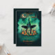 Attractive & Mystical Halloween Witch Conjures Enchanting Spells Amid Glowing Candles And Vibrant Pumpkins Under A Moonlit Teal Sky Bridesmaid Proposal Cards.