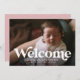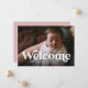 Una audaz "bienvenida" de estilo vintage contra una sola foto hace una manera dulce y elegante de presentar tu recién nacido. Con espacio para el nombre y las estadísticas en la parte delantera con la foto, el reverso de este anuncio de nacimiento es un rosa polvoriento dulce (el color puede cambiarse haciendo clic en "personalizar"). Perfecto para que los padres nuevos y geniales presenten a su nueva niña con un toque de modernidad.