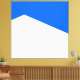 Este moderno diseño presenta un arte geométrico asimétrico azul y blanco que evoca una montaña nevada contra el cielo azul claro.
