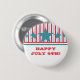 Elegante y vibrante Audaz botón de Estrellas y Rayas del 4 de julio con franjas simples rojas, blancas y azules y una hilera de divertidas estrellas turquesas. Este botón de moda es una buena manera de mostrar tu lado patriótico este 4 de julio. Personalizar este diseño con el texto de su elección. Para cambiar fuentes o colores de texto, haga clic en el botón "Personalizar". ¡Este diseño también es apropiado para el Día de la Conmemoración!