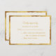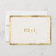 La simplicidad de esta carta de respuesta la hace bonita y elegante. Esta versión de diseño presenta un elegante borde dorado, ligeramente grueso y atrevido, con tipografía dorada para el personalizable RSVP, y detalles adicionales de la tarjeta de respuesta. Personalizable fondo blanco roto para que coincida con el tema y estilo de su boda. Forma parte de la colección de Bodas de lujo de estilo sencillo.