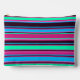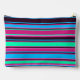 Haga una declaración con esta bolsa de cierre de cierre a rayas en negrita magenta, aqua y azul. Diseñado para los amantes del color, esta gran bolsa es perfecta para la organización de sus cosméticos, material escolar, material de viaje o accesorios tecnológicos. Duradero y elegante, es un atractivo añadido a cualquier mala mesa o escritorio.