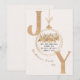 Celebra la magia de los Navidades con esta elegante tarjeta de vacaciones JOY. En tonos suaves de oro y beige, la alegre "O" revela una escena invernal de cabañas y árboles de Navidad, aportando encanto y alegría a tus sentidos saludos festivos.