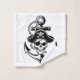Este sorprendente ilustracion blanco y negro presenta un cráneo de pirata feroz con un clásico gorra pirata, con un parche en el ojo y unos huesos cruzados. El diseño está anclado por un gran ancla de barco entrelazado con una cuerda que simboliza una audaz aventura náutica. Este diseño captura la esencia de la rebelión en alta mar y la vida pirata.