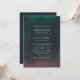 Dramáticamente elegante en tonos azules de medianoche, verde jade y púrpura rico, nuestra invitación a la boda de Aurora se inspira en las luces del norte o aurora boreal, el fenómeno atmosférico que ilumina el cielo nocturno en brillantes tonos. Las tarjetas de invitación tienen un lavado de gradiente de color agua en verde y morado sobre un fondo del cielo de medianoche, con los detalles de tu boda mostrados en elegantes letras blancas. Las tarjetas se revierten a azul sólido de medianoche.
