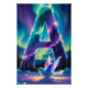 Bring celestial beauty into your home with this Aurora Letter A poster. A glowing letter A rises above a snowy forest, illuminated by vibrant waves of Northern Lights in shades of turquoise, violet, emerald, and deep blue. Soft aurora light reflects across the snow while a small winter bird stands at the base of the monogram, creating a peaceful and enchanting arctic scene.