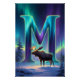 Bring majestic winter beauty into your space with this Aurora Letter M wall art. A glowing letter M rises from a snow-covered forest, illuminated by flowing ribbons of Northern Lights in shimmering shades of turquoise, emerald, and violet. A gentle moose stands in the foreground, softly lit by the aurora glow, adding a peaceful woodland moose to the magical winter scene.