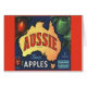 Las manzanas australianas de Tasmania son una etiqueta vintage de la caja de fruta de 1933 . Mapa de Australia en el centro con manzanas rojas y verdes a su alrededor.