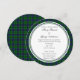 Invitación redonda de bodas de personalizable con temática Boda escocesa utilizando uno de los tartanes escoceses del nombre Austin. La información sobre la invitación a la boda de personalizable se enmarca en el centro de una invitación redonda. Es perfecto para bodas de destino, bodas del patrimonio familiar o bodas de temática escocesa. Si quieres que otro escote no aparezca aquí, por favor siéntete libre de enviarme un mensaje. Proporcione el número de referencia de STA para el patrón tartán que desee, de ser posible.