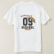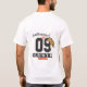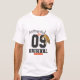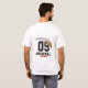 Esta imagen muestra a un hombre usando una camiseta blanca y de manga corta para el cuello de la tripulación con un diseño gráfico atrevido y estilizado. El elemento central de diseño es el gran número "09" en un tipo de letra grueso, negro y bloqueante con un contorno blanco, que recuerda a los números de las camisetas deportivas.