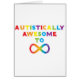 Diseño hecho con amor por la conciencia del autismo. Las letras arcoiris forman la frase 'Autistically Awesome To Infinity' con un símbolo infinito.