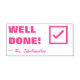 Este inspirador estampado de goma muestra el mensaje positivo "¡BIEN HECHO!" y el nombre personalizado del profesor o educador. También cuenta con una marca de verificación decorativa. Podría ser utilizado por un profesor o educador escolar al marcar las asignaciones, para reconocer que el estudiante ha tenido un buen desempeño.