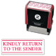 Este minimalista diseño de sellos de caucho incluye el mensaje "RETORNO AMABLE AL ENVÍO". Podría utilizarse para indicar que el correo recibido se ha enviado a la dirección equivocada o a un destinatario desconocido, y debe devolverse al remitente.