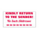 Este diseño de sellos de goma incluye los mensajes "¡RETORNE AMABLEMENTE AL ENVÍO!" y "No a tal destinatario", junto con una forma decorativa de flecha. Podría utilizarse para indicar que el correo postal recibido puede haberse dirigido erróneamente y debe devolverse al remitente.