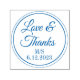 Elegante boda gracias a usted que se auto-emintan sellos de goma con texto personalizado y doble marco de círculo. Personalice el texto para sus necesidades de boda. Ideal para estampar cajas, bolsas o etiquetas de favores.