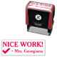 Este motivante diseño de sellos de goma incluye el mensaje "¡BUENO TRABAJO!" y el nombre de un profesor personalizado. También cuenta con una marca de verificación decorativa. Podría ser utilizado por un profesor o educador al calificar el trabajo estudiantil, para reconocer que un estudiante ha hecho un trabajo excepcional.