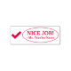 Este inspirador diseño de sellos de goma incluye el motivador mensaje de retroalimentación "¡NICE JOB!" y el nombre de un profesor o educador personalizado. También incluye un icono decorativo de marca de verificación. Podría ser utilizado por un profesor, educador o tutor al calificar el trabajo estudiantil, para reconocer que un estudiante ha hecho un trabajo excepcional.