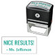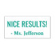 Este positivo diseño de sello de goma incluye el mensaje motivacional "¡NICE RESULTS!" y el nombre personalizado del profesor o educador. Podría ser utilizado por un profesor, educador o tutor cuando califica el trabajo de un estudiante, para indicar que un estudiante ha hecho un trabajo excepcional.