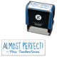 Este inspirador diseño de sellos de caucho muestra el mensaje positivo "¡CASI PERFECTO!" y el nombre de un educador personalizado. Podría ser utilizado por un profesor de escuela, educador, instructor o tutor al marcar las asignaciones, para indicar que el estudiante ha tenido un buen desempeño.