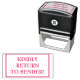 Este tradicional diseño de sellos de caucho incluye el mensaje "¡POR SUERTE REGRESAR AL ENVÍO!". Podría utilizarse para indicar que el correo postal recibido puede haberse dirigido erróneamente y debe devolverse al remitente.