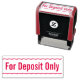 Este diseño neutro de sello de goma incluye el mensaje "Sólo para depósito". Podría ser utilizado por un empleado de contabilidad o un empleado financiero para añadir rápidamente un respaldo restrictivo a un cheque.