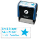 Este diseño de sello de goma positivo presenta el mensaje de retroalimentación motivacional "¡Solución brillante!" y un nombre educador personalizado. También tiene forma de estrella decorativa. Podría ser utilizado por un profesor, educador o tutor al marcar las asignaciones, para indicar que un estudiante ha tenido un buen desempeño.