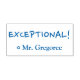 Este positivo diseño de sello de goma muestra el mensaje positivo "¡EXCEPCIONAL!" y el nombre personalizado del profesor, educador o tutor. Podría ser utilizado por un profesor, educador o tutor al marcar asignaciones, para reconocer que el estudiante ha hecho un gran trabajo.