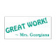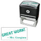 Este motivador diseño de sellos de goma incluye el inspirador mensaje "¡GRAN TRABAJO!" y el nombre de un educador personalizado. Podría ser utilizado por un profesor, educador o tutor al marcar las asignaciones, para reconocer que un estudiante ha tenido un buen desempeño.