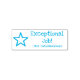 Este inspirador diseño de sellos de caucho presenta el mensaje de retroalimentación motivacional "¡Trabajo excepcional!" y el nombre de un educador personalizado. También cuenta con un icono decorativo de forma estrella. Podría ser utilizado por un profesor de escuela, educador, instructor o tutor al marcar las asignaciones, para indicar que el estudiante ha hecho un gran trabajo.