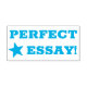 Este motivador diseño de sellos de caucho muestra el mensaje "¡PERFECTO ESSAY!". También tiene forma de estrella decorativa. Podría ser utilizado por un profesor, educador o tutor al marcar asignaciones, para indicar que el estudiante ha hecho un gran trabajo.