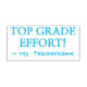 Este motivador diseño de sellos de goma incluye el motivador mensaje "¡TOP GRADE EFFORT!" y el nombre de un personalizado tutor. Podría ser utilizado por un profesor o educador al calificar el trabajo estudiantil, para reconocer que un estudiante ha hecho un trabajo excepcional.