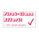 Este diseño de sello de goma inspirador presenta el mensaje de retroalimentación motivacional "¡Esfuerzo de Primera Clase!" y un nombre de educador personalizado. También cuenta con una marca de verificación decorativa. Puede ser utilizado por un maestro, educador, instructor o tutor al calificar el trabajo de los estudiantes, para indicar que un estudiante ha hecho un trabajo excepcional.