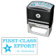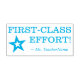 Este inspirador diseño de sellos de goma incluye el motivacional mensaje de retroalimentación "¡ESFUERZO DE PRIMERA CLASE!" y el nombre personalizado de un profesor o educador. También tiene forma de estrella decorativa. Podría ser utilizado por un profesor de escuela, educador, instructor o tutor al marcar las asignaciones, para reconocer que el estudiante ha tenido un buen desempeño.