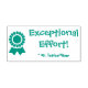 Este divertido diseño de sellos de caucho muestra el mensaje positivo "Esfuerzo Excepcional!" y un nombre de tutor personalizado. También incluye un icono decorativo de la cinta de premio. Podría ser utilizado por un profesor, educador o tutor al calificar el trabajo estudiantil, para reconocer que un estudiante ha hecho un trabajo excepcional.