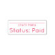 Este diseño de sello de goma incluye el mensaje "Estado: Pagado" y una línea donde se puede escribir una fecha de pago. Podría utilizarse para marcar que una factura o factura se ha pagado íntegramente.