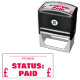 Este diseño de sello de goma incluye los mensajes "STATUS: PAID", junto con un símbolo de signo de libra y una línea donde se puede escribir una fecha de pago. Podría utilizarse para marcar que una factura o factura se ha pagado íntegramente.