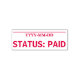Este sencillo y sencillo diseño de sello de goma incluye los mensajes "STATUS: PAID" y una línea donde se puede escribir una fecha de pago. Tal vez podría utilizarse para indicar que se ha pagado una factura o factura.