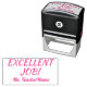 Este motivante diseño de sellos de goma incluye el mensaje "¡EXCELENTE TRABAJO!" y un nombre de educador personalizado. Podría ser utilizado por un profesor o educador al calificar el trabajo estudiantil, para reconocer que un estudiante ha hecho un trabajo excepcional.