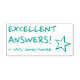 Este motivante diseño de sellos de goma incluye el motivador mensaje "¡RESPUESTAS EXCELENTES!" y el nombre personalizado del profesor. También tiene forma de estrella decorativa. Podría ser utilizado por un profesor o educador al calificar el trabajo estudiantil, para reconocer que un estudiante ha hecho un trabajo excepcional.