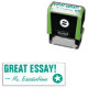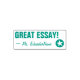 Este diseño positivo de sello de goma incluye el mensaje "GREAT ESSAY!" y un nombre personalizado del tutor. También tiene forma de estrella decorativa. Podría ser utilizado por un profesor de escuela, educador, instructor o tutor al marcar las asignaciones, para indicar que el estudiante ha hecho un gran trabajo.