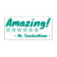 Este inspirador diseño de sellos de goma incluye el mensaje de elogio "¡Asombroso!" y el nombre personalizado del tutor. También tiene forma decorativa de contorno estelar. Podría ser utilizado por un profesor, educador o tutor al marcar asignaciones, para indicar que el estudiante ha hecho un gran trabajo.