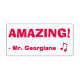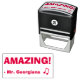 Este motivador diseño de sellos de goma incluye el motivador mensaje "¡AMAZANTE!" y el nombre personalizado del profesor. También cuenta con una nota musical decorativa. Podría ser utilizado por un profesor o educador al marcar las asignaciones, para reconocer que el estudiante ha tenido un buen desempeño.
