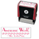 Este inspirador diseño de sellos de goma incluye el mensaje de elogio "¡Impresionante trabajo!" y el nombre de un educador personalizado. También incluye iconos decorativos de los dedos señaladores. Podría ser utilizado por un profesor o educador escolar al marcar las asignaciones, para reconocer que el estudiante ha tenido un buen desempeño.