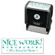 Este diseño positivo de sellos de goma incluye el motivador mensaje de retroalimentación "¡BUENO TRABAJO!" y un nombre de tutor personalizado. También tiene formas estelares decorativas. Podría ser utilizado por un profesor de escuela, educador o tutor al marcar las asignaciones, para reconocer que el estudiante ha tenido un buen desempeño.