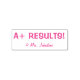 Este diseño positivo de sello de goma incluye el inspirador mensaje "¡A+ RESULTADOS!" y el nombre de un profesor personalizado o educador. Podría ser utilizado por un profesor o educador al marcar las asignaciones, para reconocer que un estudiante ha tenido un buen desempeño.