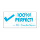 Este divertido diseño de sellos de goma muestra el motivador mensaje "100%! ¡PERFECTO!" y un nombre de personalizado. También cuenta con una marca de verificación decorativa. Podría ser utilizado por un profesor de escuela, educador o tutor al marcar las asignaciones, para reconocer que el estudiante ha hecho un gran trabajo.