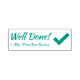 Este motivante diseño de sellos de goma incluye el inspirador mensaje "¡Bien hecho!" y un nombre personalizado del profesor. También cuenta con una marca de verificación decorativa. Podría ser utilizado por un profesor o educador al marcar las asignaciones, para reconocer que un estudiante ha tenido un buen desempeño.