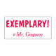 Este positivo diseño de sello de goma incluye el inspirador mensaje "¡EXEMPLARY!" y el nombre de un educador personalizado. Podría ser utilizado por un profesor, educador o tutor al marcar asignaciones, para indicar que el estudiante ha hecho un gran trabajo.