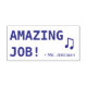 Este divertido diseño de sellos de goma incluye el mensaje motivacional "¡TRABAJO ASOMBROSO!" y el nombre personalizado del profesor. También cuenta con una nota musical decorativa. Podría ser utilizado por un profesor o educador al marcar las asignaciones, para reconocer que el estudiante ha hecho un gran trabajo.